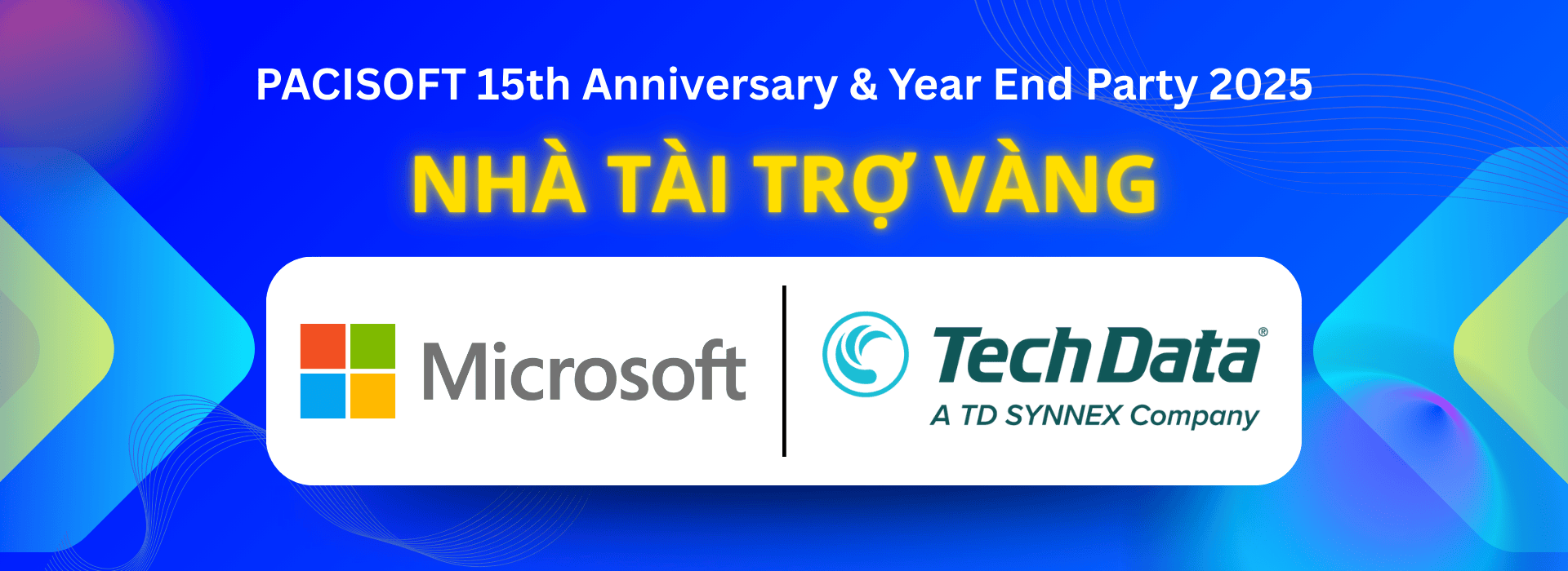 PACISOFT trân trọng gửi lời cảm ơn chân thành đến Microsoft – Tech Data, Nhà Tài Trợ Vàng đã đồng hành cùng sự kiện PACISOFT 15 Năm – Year End Party 2025. Sự hỗ trợ và hợp tác của Quý Đối tác đã mang đến những giá trị thiết thực, góp phần nâng cao chất lượng chương trình và tạo nên một dấu mốc đáng nhớ trong hành trình phát triển của PACISOFT.