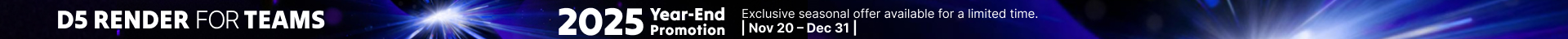 Chào đón mùa lễ hội cuối năm, D5 Render chính thức triển khai Year-End Promotion 2025 – chương trình ưu đãi hấp dẫn nhất năm dành cho kiến trúc sư, studio thiết kế, doanh nghiệp sáng tạo và các đội nhóm chuyên nghiệp.