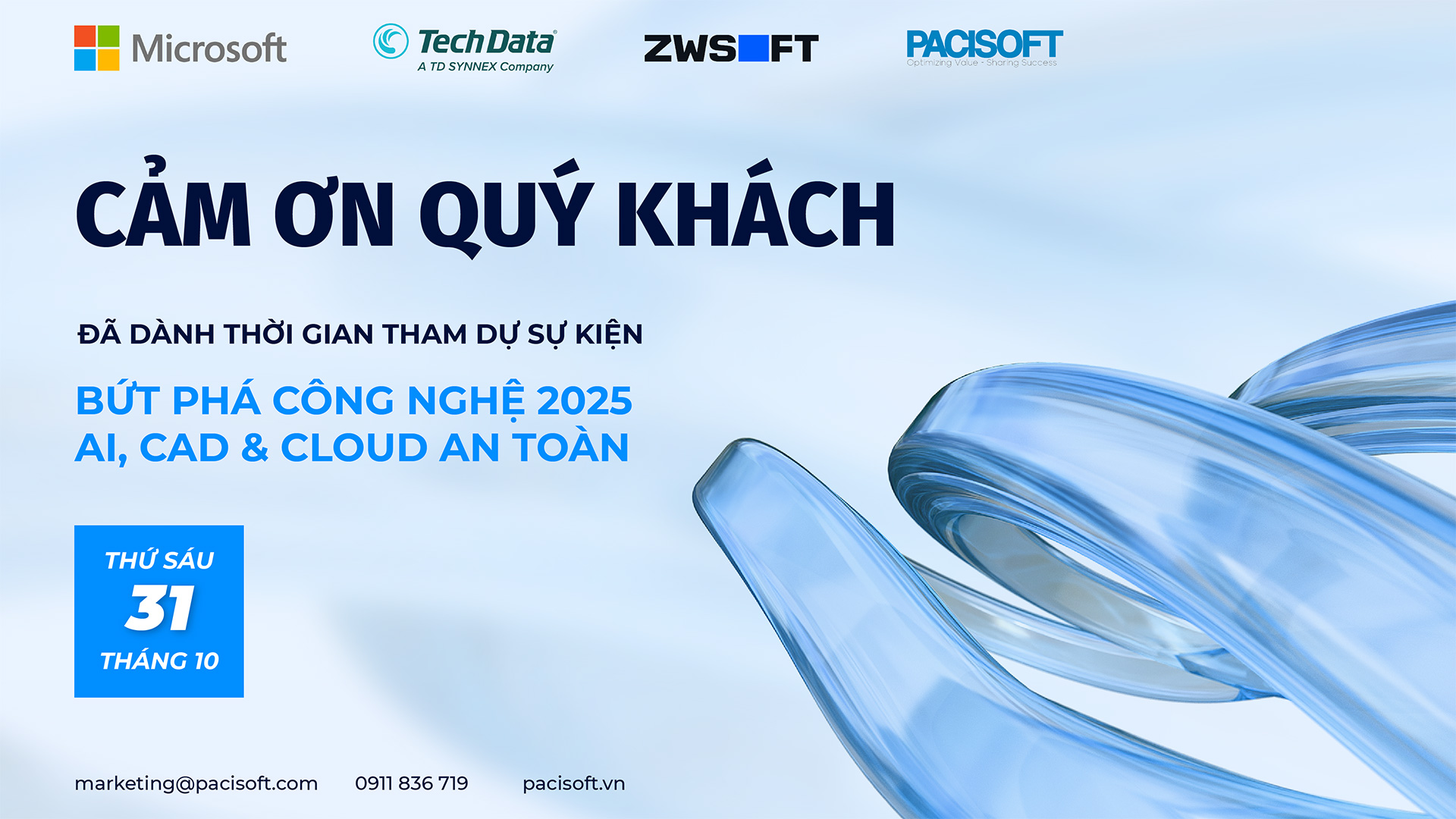Ngày 31.10.2025 vừa qua, PACISOFT đã phối hợp cùng Microsoft, ZWSOFT và TechData tổ chức thành công sự kiện mang chủ đề “Bứt Phá Công Nghệ 2025: AI, CAD & Cloud An Toàn”.
