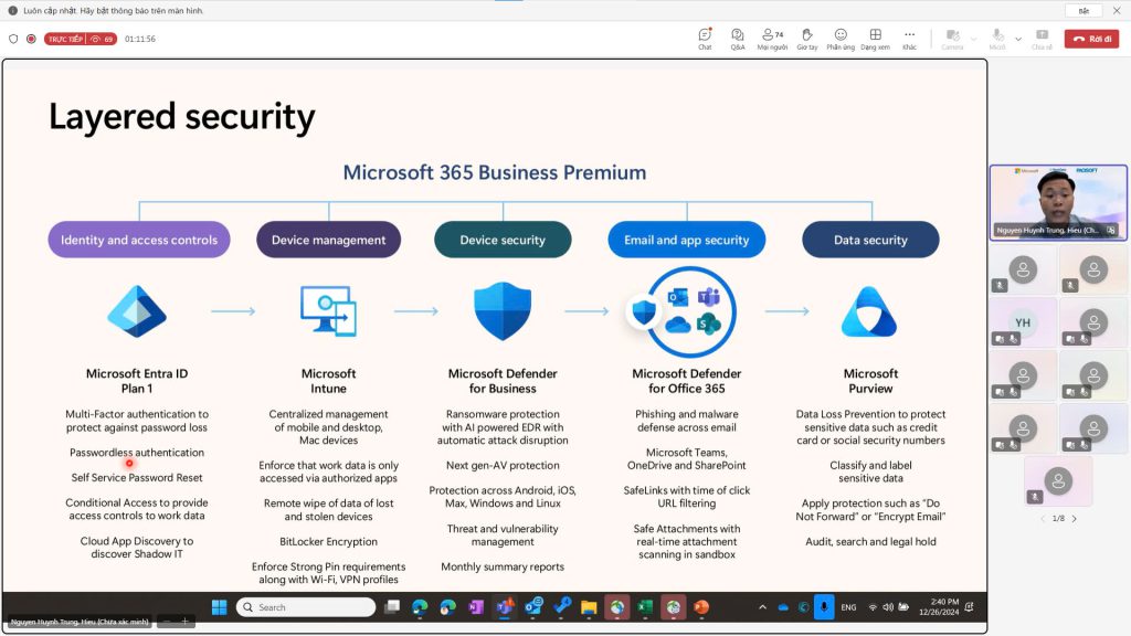 Với sự tham gia của các chuyên gia bảo mật hàng đầu, anh Nam Vu – đại diện Microsoft, và anh Hieu Nguyen – Pre-Sales Consultant của TechData, webinar đã không chỉ cung cấp cái nhìn sắc bén về xu hướng công nghệ, mà còn đưa ra những chiến lược bảo mật thực tế, giúp doanh nghiệp ngay lập tức nâng cao khả năng phòng chống và bảo vệ dữ liệu khỏi những nguy cơ tiềm ẩn trong thế giới mạng xã hội đầy biến động.