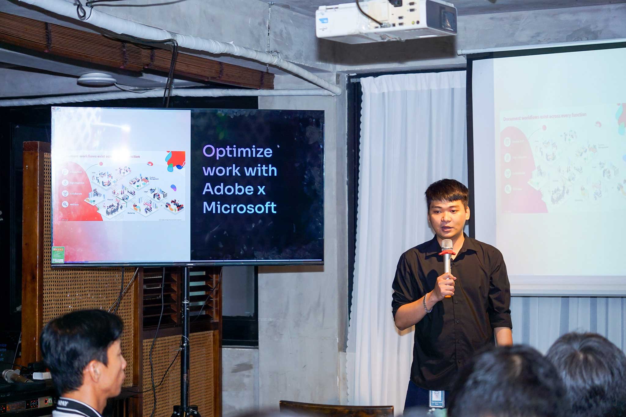 Diễn giả Mr. Hoàng Quân, Presales Consultant tại TechData, đã chia sẻ về cách sử dụng Adobe Acrobat kết hợp với các giải pháp Microsoft để tối ưu hóa quy trình làm việc. Sự kết hợp này không chỉ giúp doanh nghiệp tiết kiệm thời gian mà còn nâng cao hiệu suất, đáp ứng nhu cầu ngày càng cao trong môi trường kinh doanh hiện đại.