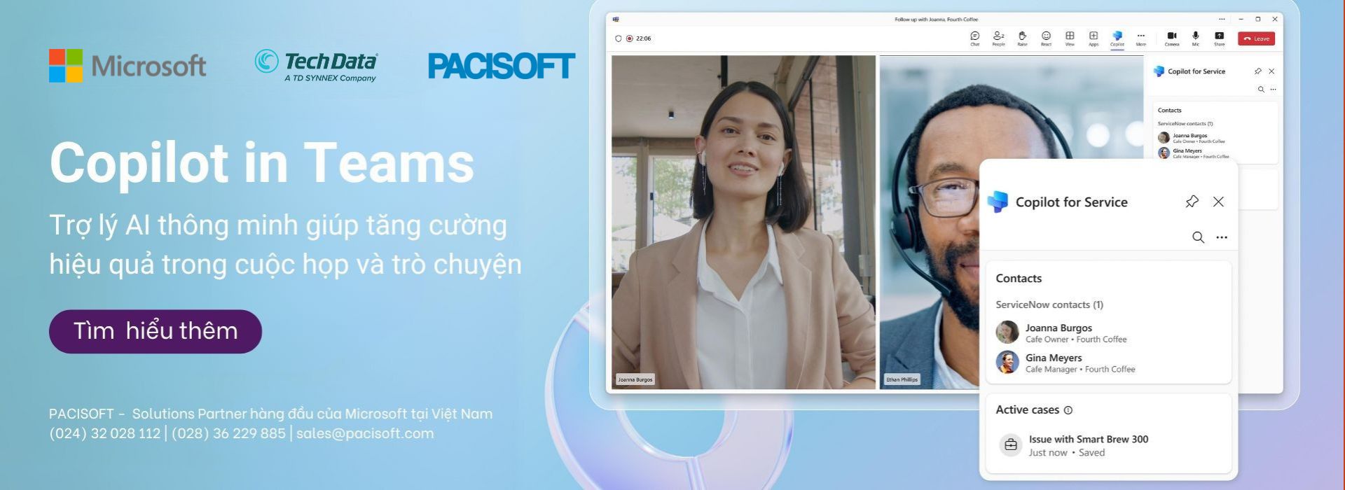 Vậy làm thế nào để doanh nghiệp có thể sở hữu Copilot in Teams bản quyền? Copilot in Teams là một giải pháp được tích hợp trong gói sản phẩm Copilot Pro và Copilot for Microsoft 365 (gói dành riêng cho doanh nghiệp), Nếu bạn là doanh nghiệp đang muốn trải nghiệm trọn vẹn những tính năng độc đáo của Copilot in Word ngay hôm nay, hãy nhanh tay liên hệ Pacisoft. Tại đây chúng tôi có cung cấp bản quyền Microsoft, chính hãng, giá cả tối ưu nhất cho doanh nghiệp của bạn.