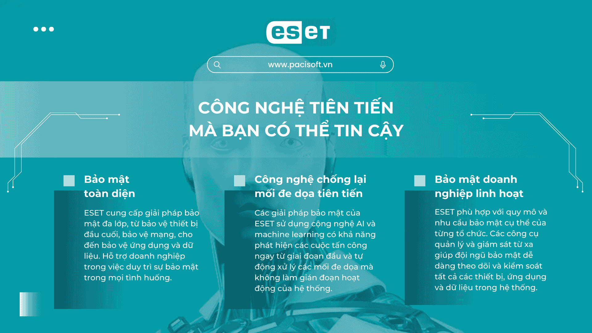 ESET là một trong những công ty bảo mật hàng đầu thế giới, nổi bật với các giải pháp bảo vệ thiết bị đầu cuối, mạng, ứng dụng và dữ liệu cho các tổ chức và doanh nghiệp. Được thành lập vào năm 1987 tại Slovakia, ESET đã xây dựng được danh tiếng vững chắc trong ngành an ninh mạng nhờ vào các công nghệ tiên tiến và hiệu quả trong việc phát hiện và ngăn chặn các mối đe dọa mạng. Với hơn 30 năm kinh nghiệm trong ngành bảo mật, ESET cung cấp các giải pháp bảo mật toàn diện, tiên tiến và hiệu quả, giúp các doanh nghiệp, tổ chức bảo vệ hệ thống của mình khỏi các mối đe dọa mạng đang ngày càng tinh vi. ESET cam kết luôn đổi mới và phát triển công nghệ để đối phó với các thách thức bảo mật trong môi trường số hiện đại.