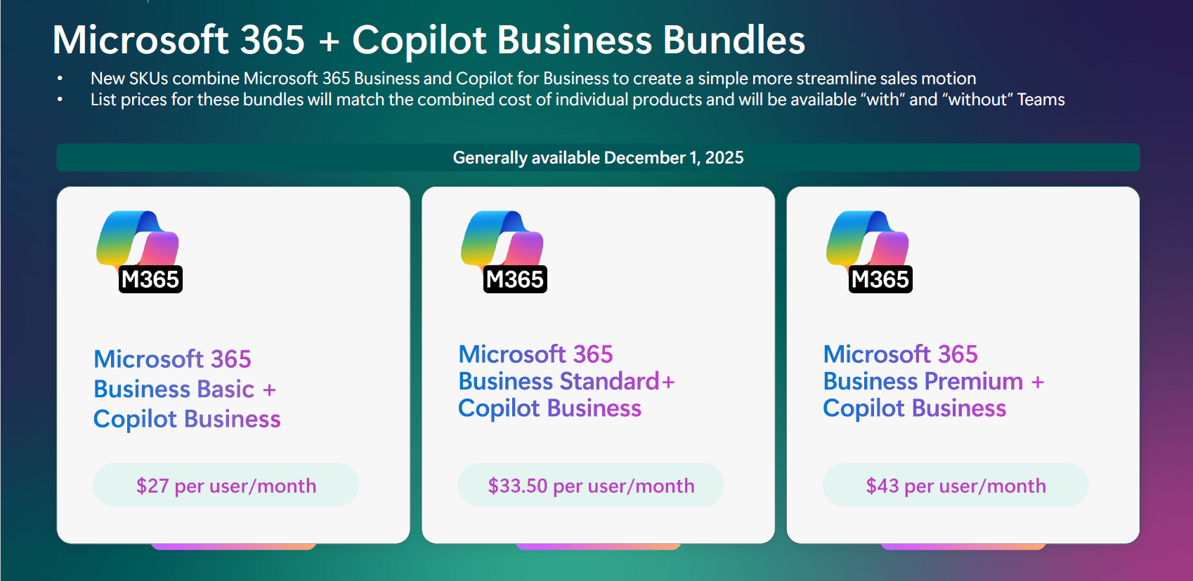 → Microsoft 365 Business Premium + Copilot Business: giảm 25% (áp dụng cho 10–300 licenses)