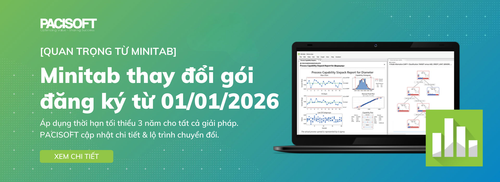 Kể từ ngày 01/01/2026, Minitab sẽ chính thức áp dụng thời hạn đăng ký tối thiểu 03 năm cho tất cả các gói giải pháp.