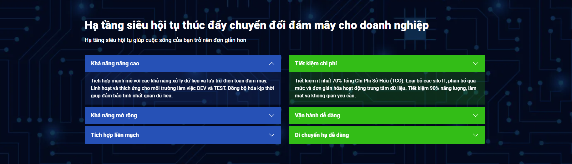 | Bảo vệ dữ liệu & phục hồi thảm họa | Vận hành ứng dụng doanh nghiệp hiệu suất cao | Giải pháp thay thế VMware tối ưu bản quyền |