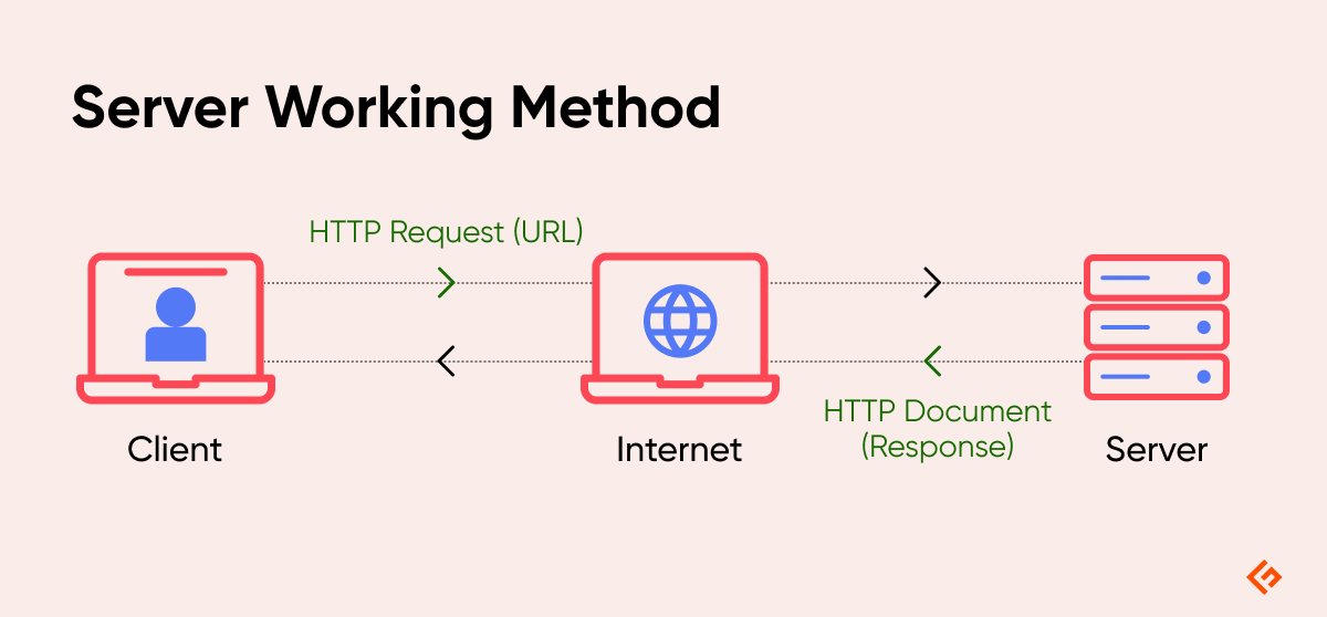 Khi một thiết bị (máy khách) gửi yêu cầu. Ví dụ: truy cập một website, máy chủ sẽ nhận, xử lý và phản hồi lại dữ liệu tương ứng.